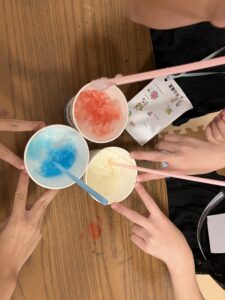 焼きそばの野菜も残さず沢山食べて、おやつにはかき氷、たこせんべいも喜んで食べました!