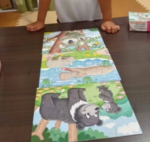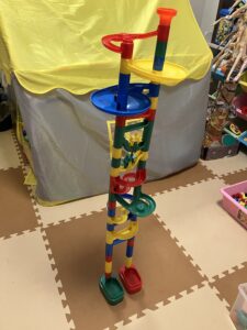 その後は本を読んだり、パズルをしたり、レゴやくみくみスロープを組み立てボールを転がしたり、プラレールを繋げたりして遊びました。