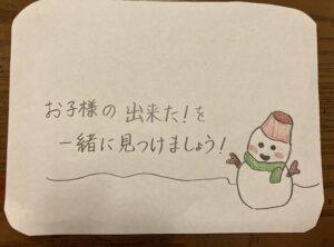 診断はなくても「少し気になる」「集中力が続かない」「感情のコントロールが苦手」「人と話をするのが苦手」等など、ご家族の不安や悩みなど私たちと一緒にぜひ考えていけたらと思います。