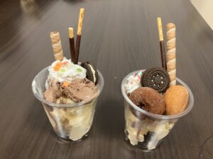 3 212026 おやつ作り 3月のおやつ作りはパフェを作りました! アイスやビスケットやポッキーなどをそれぞれ乗せてマイパフェが出来上がりました😊 皆、笑顔で頂きました! 4月の予定表出来ました! 前の記事 春休み!たこ焼きパーティー! 次の記事